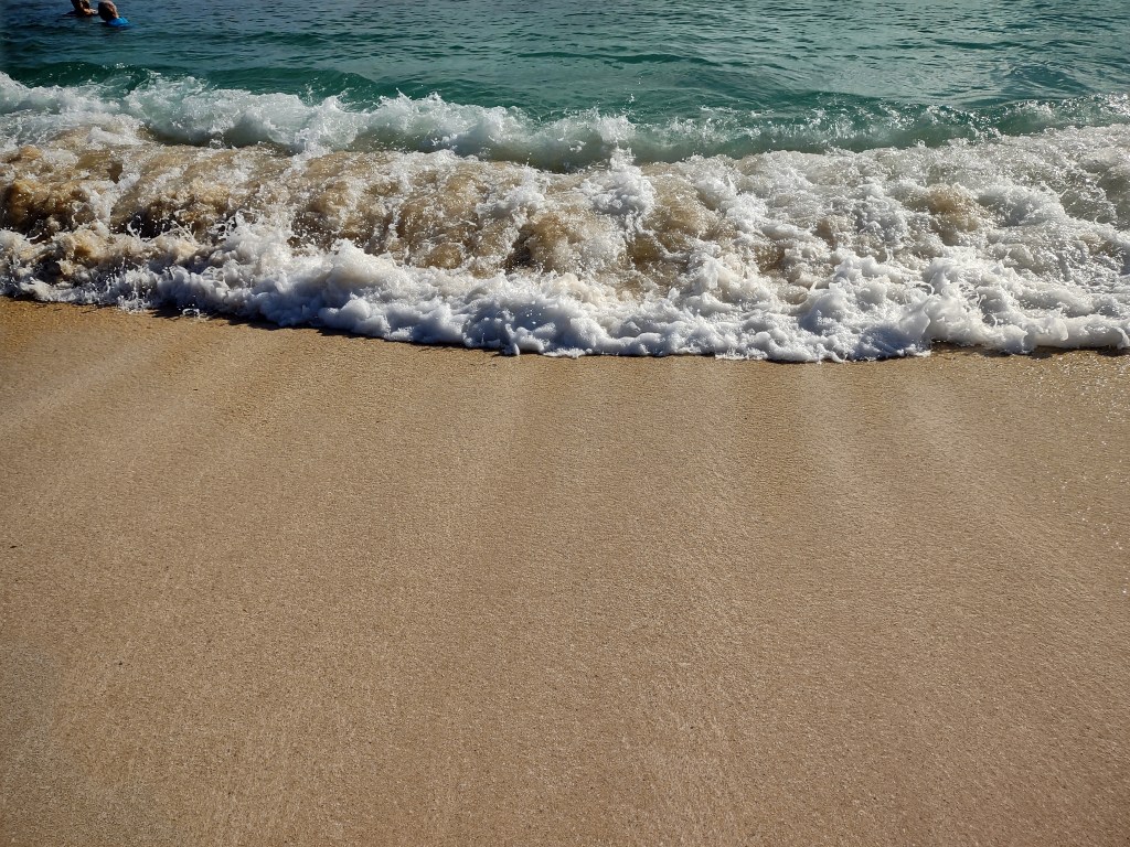 The first day we were there we ventured to a beach to enjoy the ocean. The photo here is taken by me as the waves came onto the beach. I was standing, feet firmly planted as the water rushed onto my feet and then receded back into the Pacific Ocean. My wife, Deb, was sitting just a few feet from me. Sitting, relaxing and enjoying the sights and sounds.