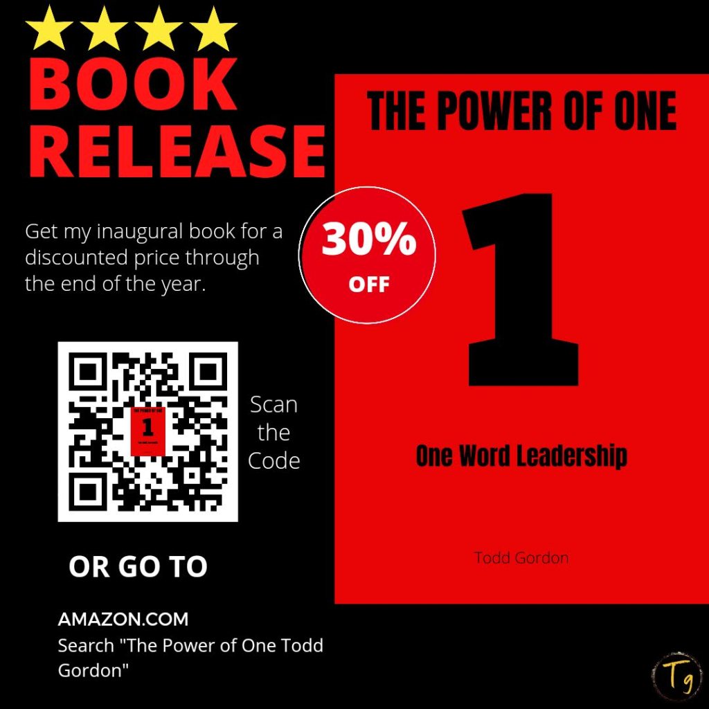 Todd authored and published his first book, “The Power of One. One Word Leadership”, in 2022.