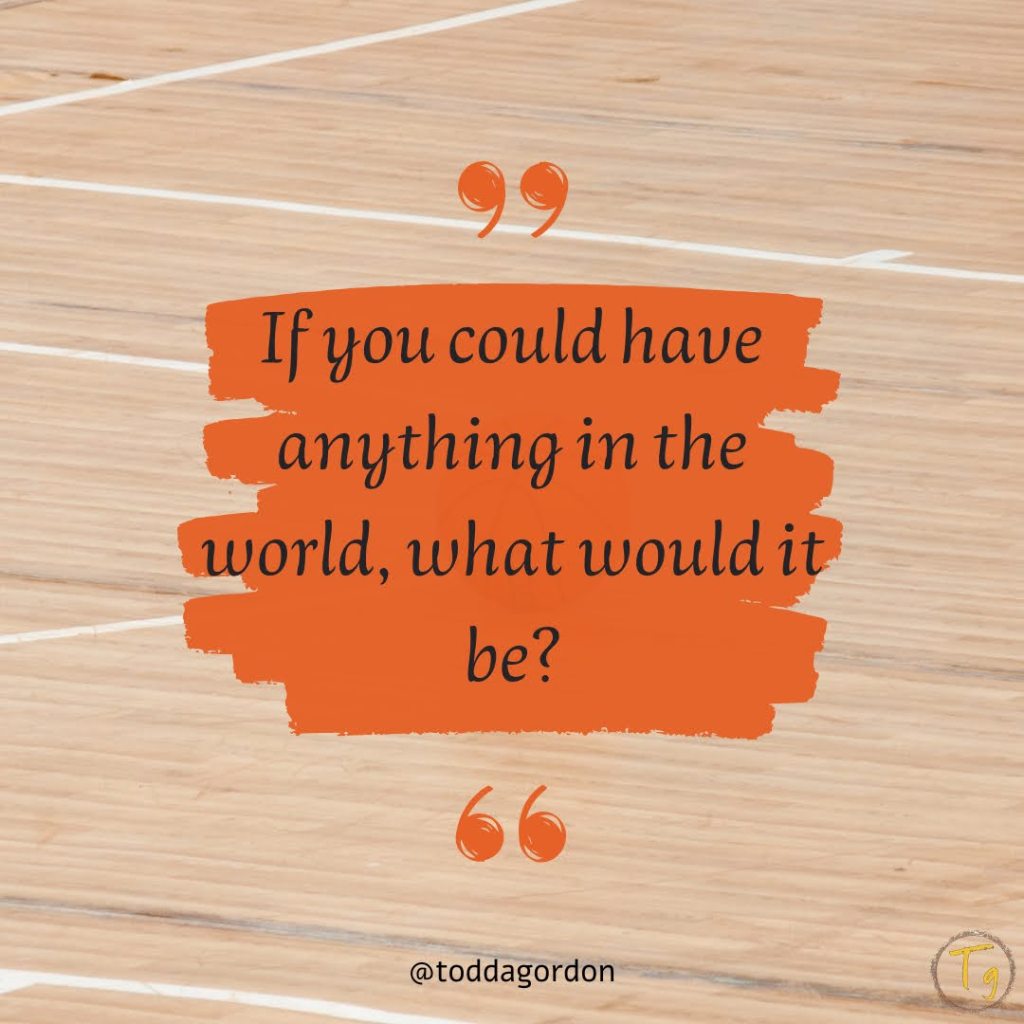 Yesterday, I was sitting at Jordan Creek Mall in Des Moines when a group of young men, probably 13-14 years old stopped. One of them asked, “Sir, I have a question. If you could have anything in the world what would it be?”