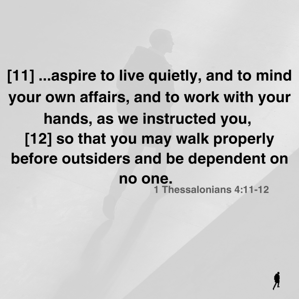 He instructs the people to lead a peaceful life, mind their own business, and to be industriousness in how they work. In other words, don’t expect others to provide for them.