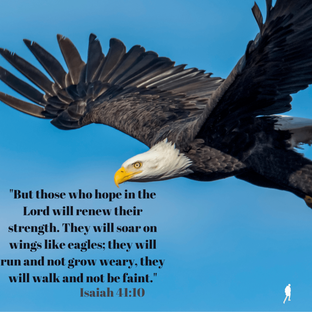Isaiah 40:31 (NIV) says, “But those who hope in the Lord will renew their strength. They will soar on wings like eagles; they will run and not grow weary, they will walk and not be faint.”