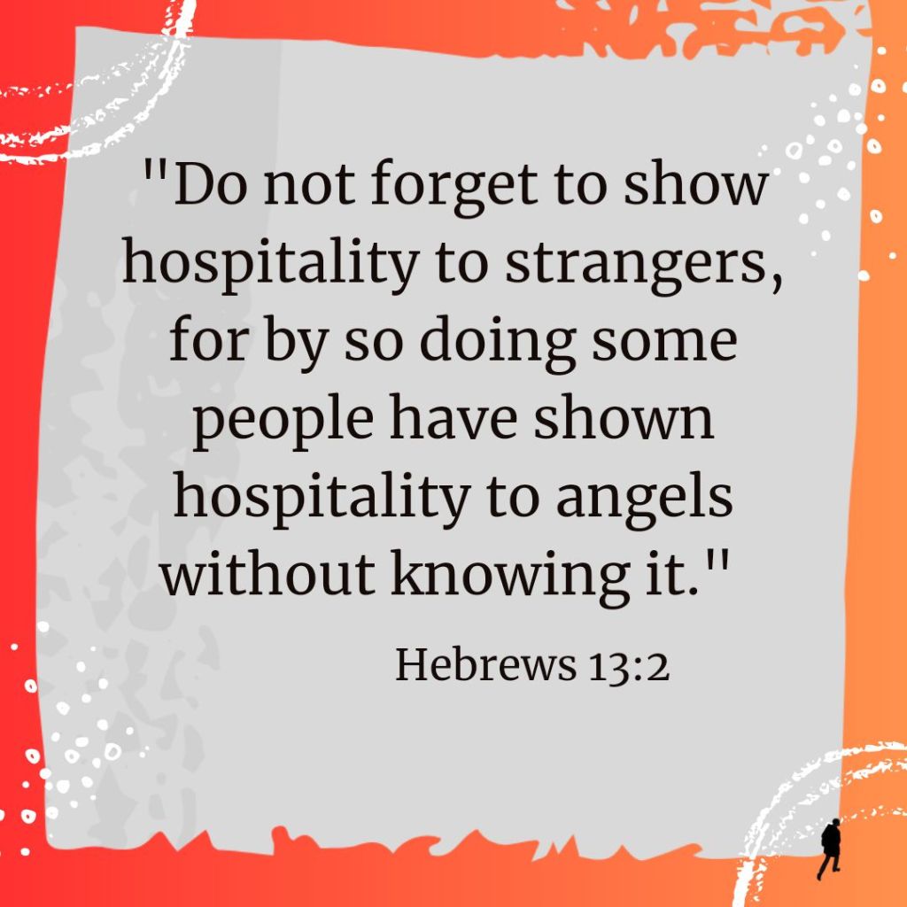 As Hebrews 13:2 (NIV) says, “Do not forget to show hospitality to strangers, for by so doing some people have shown hospitality to angels without knowing it.”