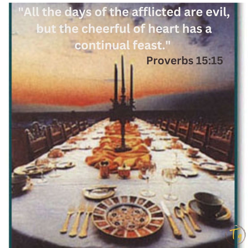 In our daily journey challenges and hardships are inevitable, but Proverbs 15:15 offers a profound truth for the Christ follower:   “All the days of the afflicted are evil, but the cheerful of heart has a continual feast.”