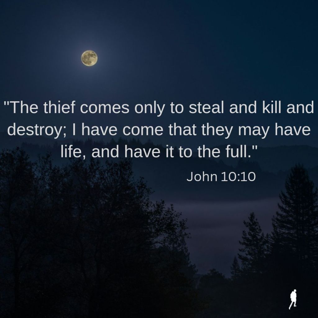 John 10:10 (NIV) – “The thief comes only to steal and kill and destroy; I have come that they may have life, and have it to the full.”