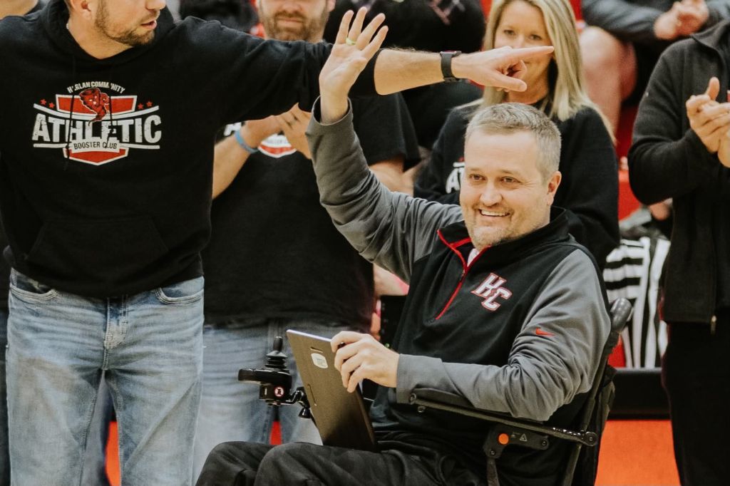 Nic has lived with cerebral palsy since the age of two. Now 43, he has built a business, helped coach championship teams, drives his own van with hand controls, and has brought joy to countless people — including us. Last week, he added another title: Harlan Athletic Booster Club Hall of Famer.