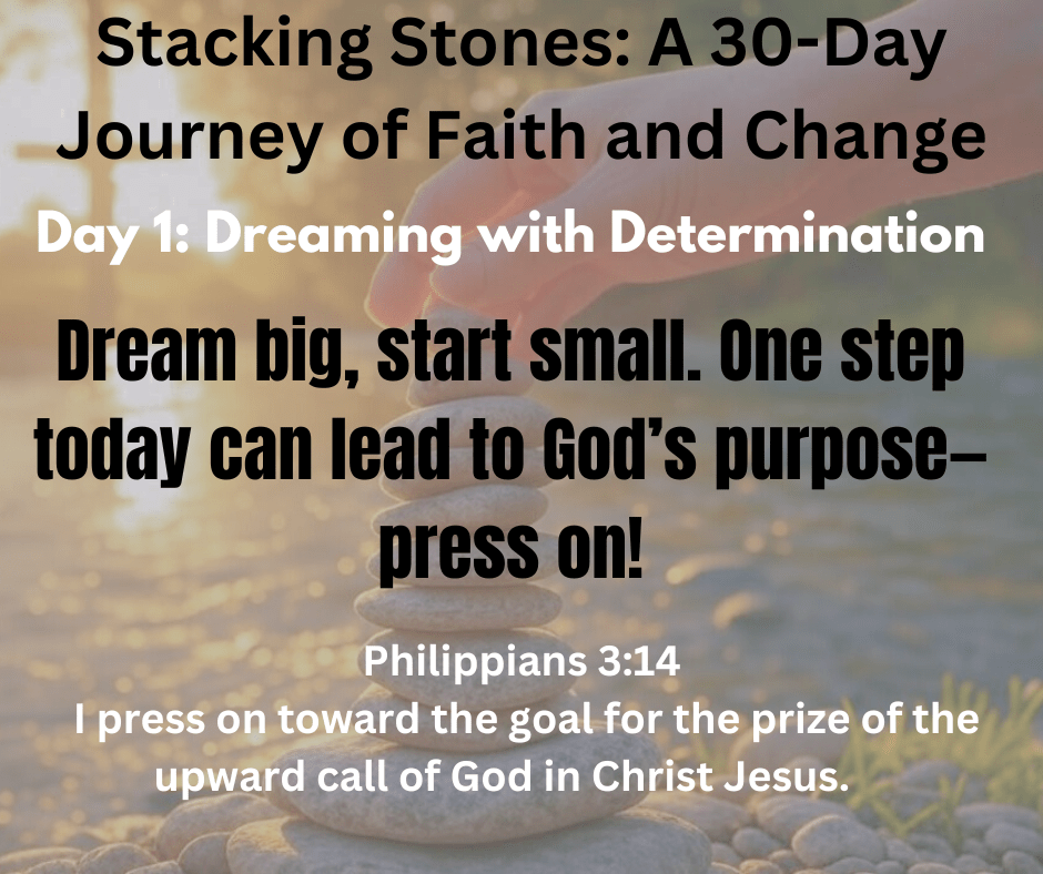 Where do we start? How do we keep going when life shifts beneath us? This 30-day journey, Stacking Stones: A 30-Day Journey of Faith and Change, is about just that—pursuing transformation, one small, faithful step at a time.