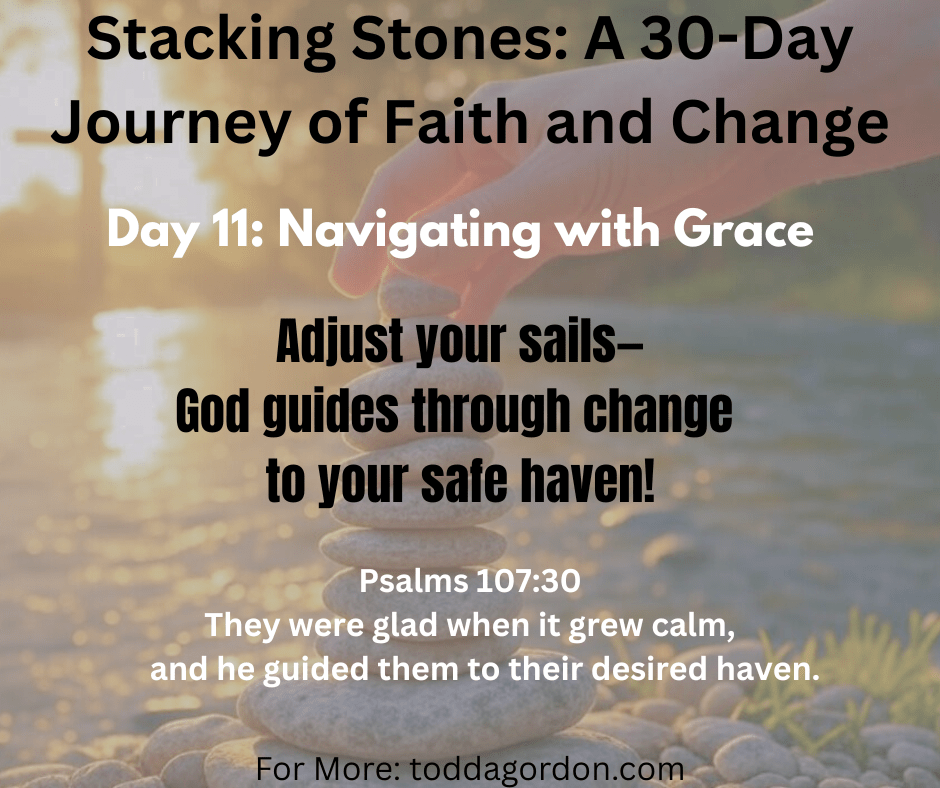 Change hits—sometimes you see it, sometimes it blindsides. Either way, adjust your sails. Psalm 107:30 (ESV) says, “…he brought them to their desired haven.” I’ve had to tweak plans—cutting steps from 10,000 to 5,000—to keep moving. Resilience isn’t stubbornness; it’s flexibility with faith. What shift can get the wind behind you again?