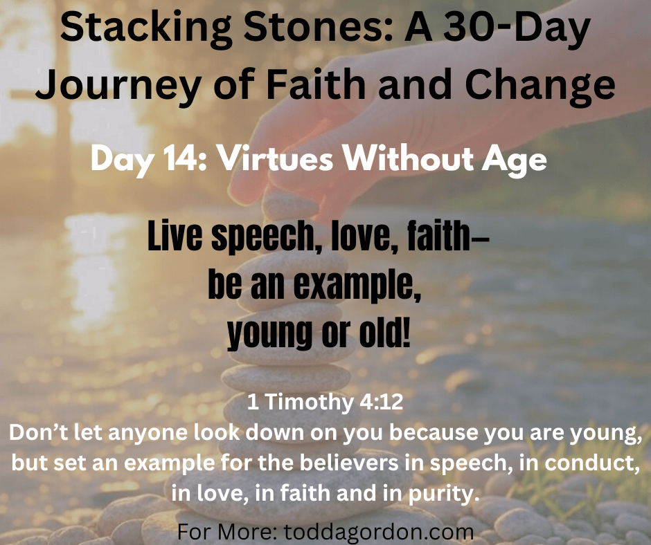 Virtues shine—speech, love, faith (1 Timothy 4:12, ESV). Young, old—We’re still growing them, still learning. Pick one—live bold. God uses it—light others’ paths. How will you reflect that virtue?